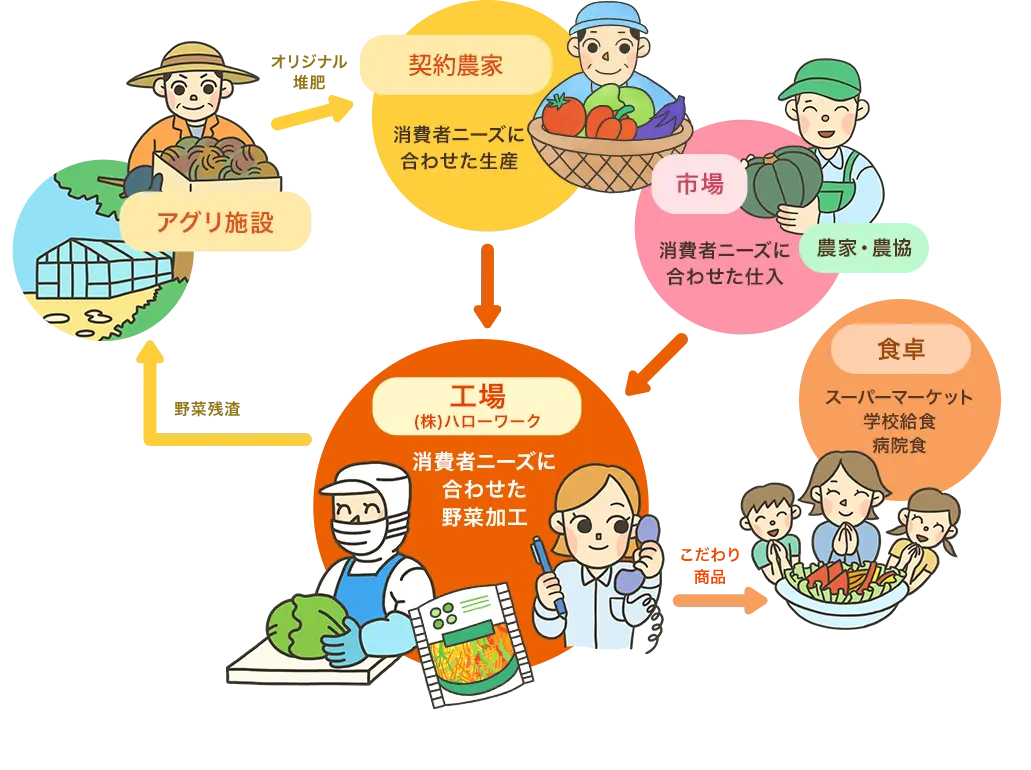 株式会社ハローワークは、パックサラダなどカット野菜の製造・販売と